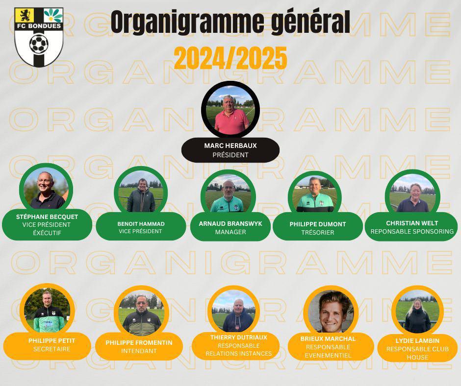 ORGANIGRAMME GENERAL DU FC BONDUES Découvrez les hommes et les femmes qui oeuvrent chaque jour pour faire du Fc Bondues un club référence dans les hauts-de-france